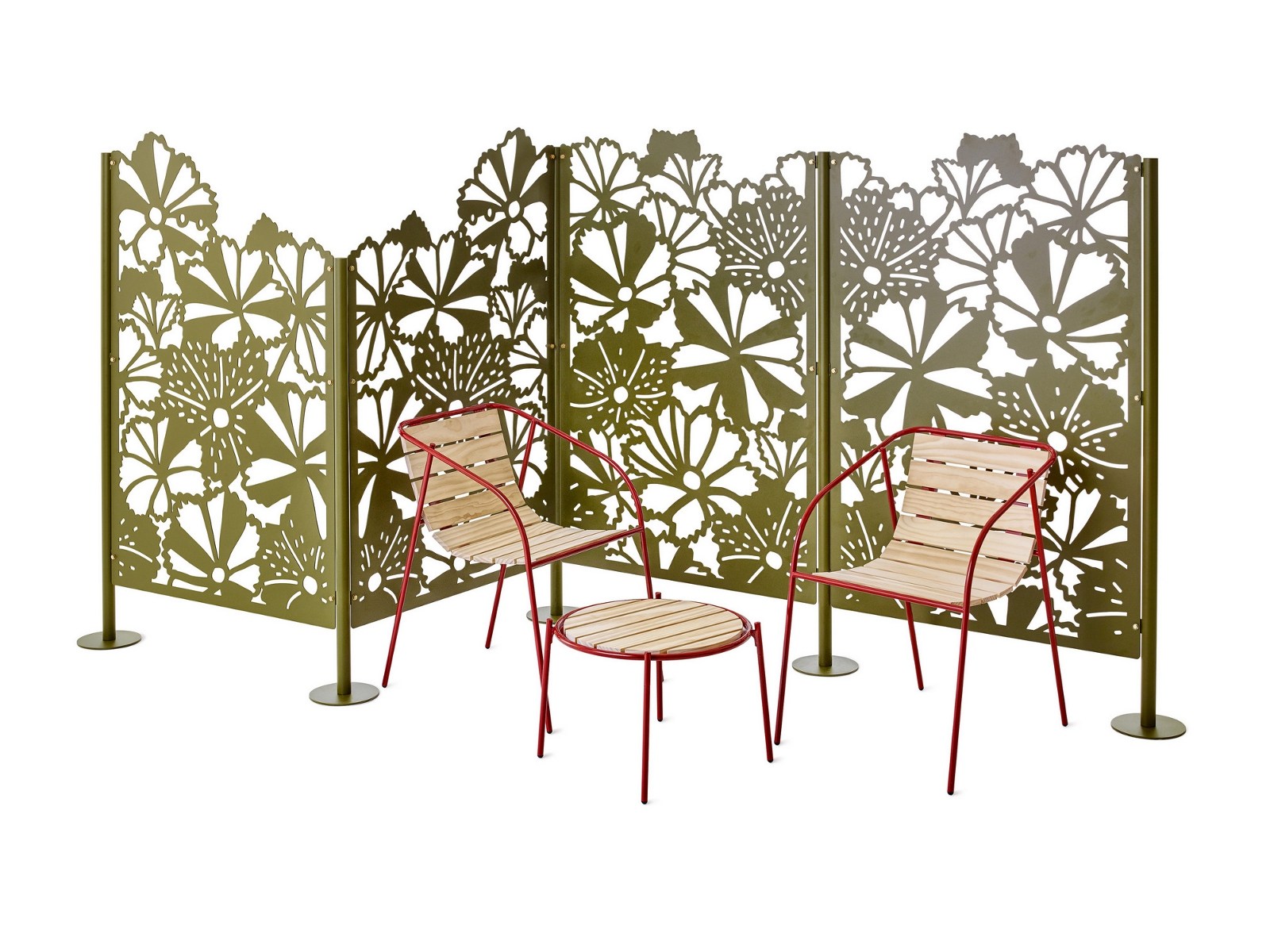 In giardino terrazzo o balcone potrebbe rendersi necessario un divisorio mobile come Daggkåpa, un separè in acciaio verniciato a polvere disegnato da Eva Schildt.