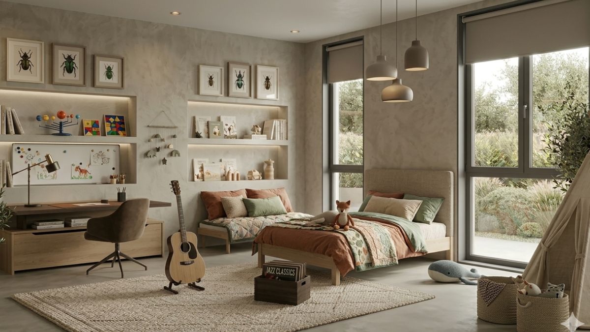 Oltre al Mushroom, la palette ideale include il greige, il crema, l’avorio, il color lino, l’argilla e il grigio pietra delicato. Queste tonalità creano una base visivamente “silenziosa” che riduce il sovraccarico sensoriale, particolarmente importante per il riposo e la concentrazione dei più piccoli. A differenza del rosa pastello o dell’azzurro cielo, che possono apparire infantili già dopo pochi anni, queste tonalità della terra mantengono una sofisticazione senza tempo che cresce con il bambino, adattandosi a ogni fase senza mai sembrare fuori posto.