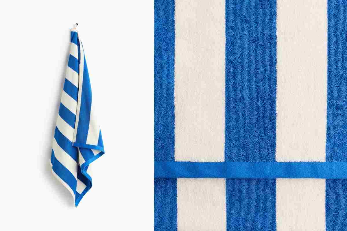 In un bagno in stile marinaro le telerie non possono non essere a righe blu e bianche. Perfetto il telo bagno blu a righe di H&M che darà quel tocco navy in modo fresco e moderno.