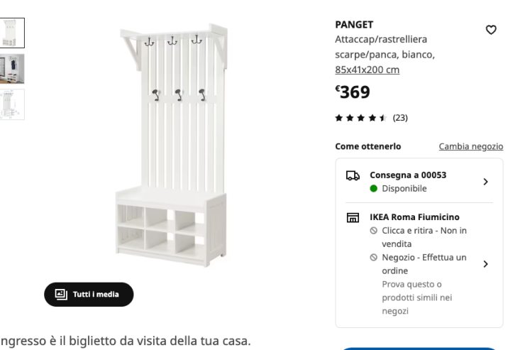 Gli amanti del design scandinavo, semplice e lineare, impazziranno per EKRAR: l’appendiabito da terra, semplice ma più che mai funzionale, venduto al costo di 29,95€. Con l’ultimo modello saliamo notevolmente di prezzo ma ne vale la pena, racchiude infatti tre funzioni in una: attaccapanni, rastrelliera per le scarpe e panca. Stiamo parlando del mobile PANGET, perfetto per arredare un ingresso o un disimpegno, misura infatti 85x41x200. Viene venduto al costo di 369€.