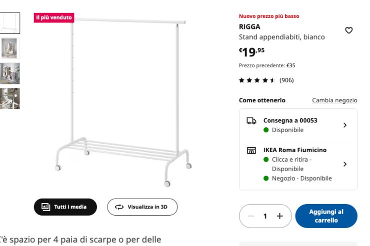 Salendo di prezzo troviamo TJUSIG, un appenditutto da muro dal design verticale, perfetto per gli spazi piccoli. Il prezzo è di 15€. Se si ha a disposizione una stanza o un’ampia parete si può optare per RIGGA, lo stand appendiabiti con una rastrelliera in basso, perfetto per ordinare scarpe e cappotti. Da sempre un dei punti forti di IKEA oggi viene rivenduto a soli