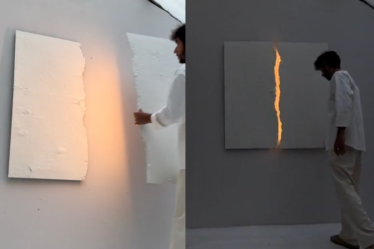 L’opera d’arte “Cuore di fuoco, edizione bianca” non è un semplice quadro, ma è molto di più. Il video spopola sui social.