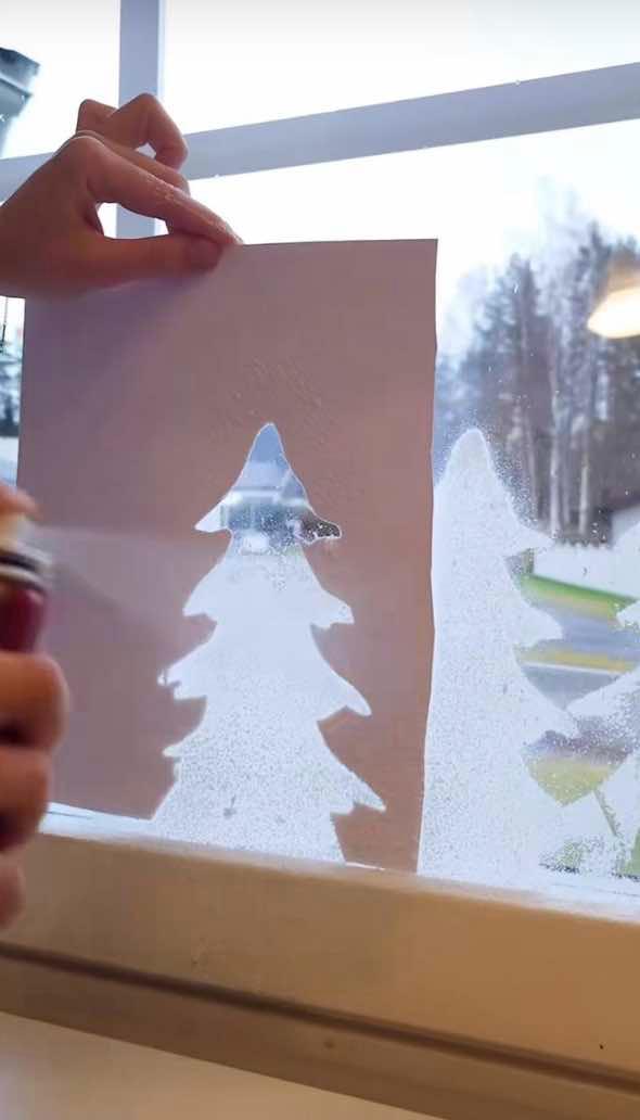 Usa cartoncino o carta comune per ritagliare forme natalizie. Non serve precisione assoluta: anche un design semplice crea un bellissimo effetto silhouette. Puoi coinvolgere i bambini, rendendo questo momento un’attività creativa di famiglia.