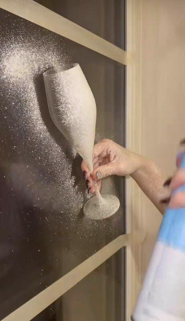 Una tecnica molto amata consiste nell’appoggiare le mani, calici o palline contro il vetro e spruzzare lo spray attorno: il risultato è una cornice nevosa che lascia al centro la forma in negativo. L’effetto finale è magico, personale e irripetibile.