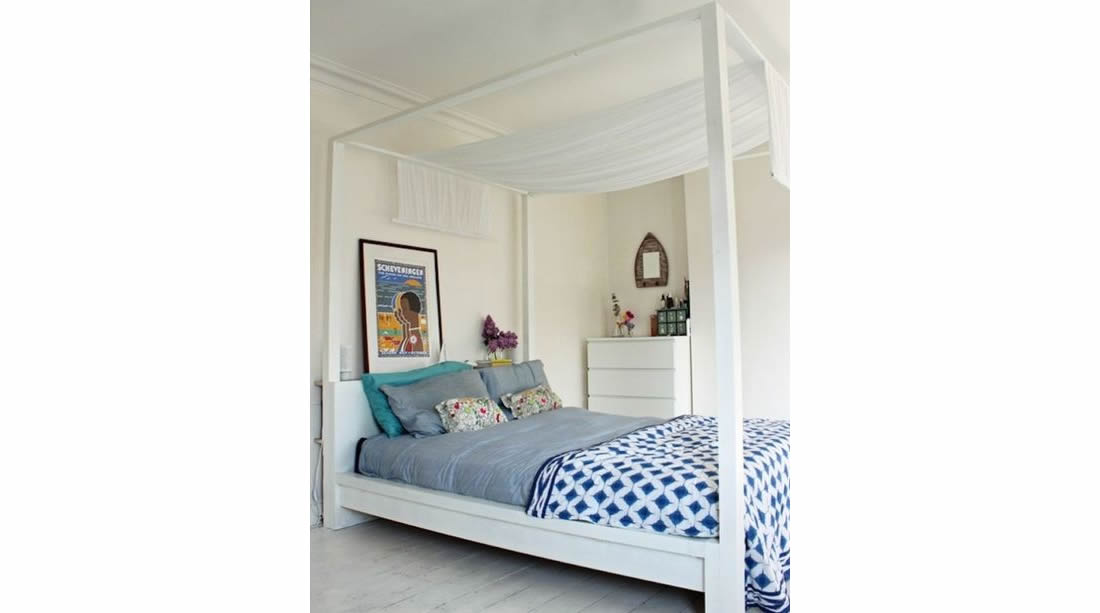 Uno dei letti matrimoniali più famosi e apprezzati di Ikea è MALM. Sta a voi scegliere se lo volete con i cassetti contenitori o senza, ma ciò che davvero conta è realizzare una struttura verticale dove mettere delle tende.