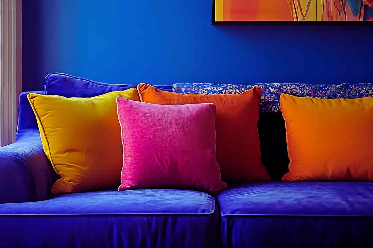 Questo non significa evitarli, ma usarli con intelligenza. In un salotto piccolo, il colore intenso funziona meglio come accento morbido, magari in un cuscino, in una poltrona laterale o in un oggetto, non come massa dominante.