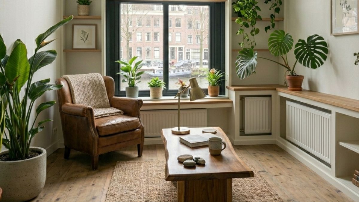 Questo approccio crea un effetto sospeso estremamente leggero, che lascia libera la vista del pavimento e non interferisce con la struttura del calorifero, permettendo al calore di salire senza ostacoli. Se lo spazio laterale lo consente, la mensola può essere prolungata oltre la larghezza del radiatore, creando una linea orizzontale continua che può ospitare anche piccoli elementi decorativi o una lampada da appoggio, dando un senso di ampiezza e intenzione architettonica a un angolo altrimenti anonimo.