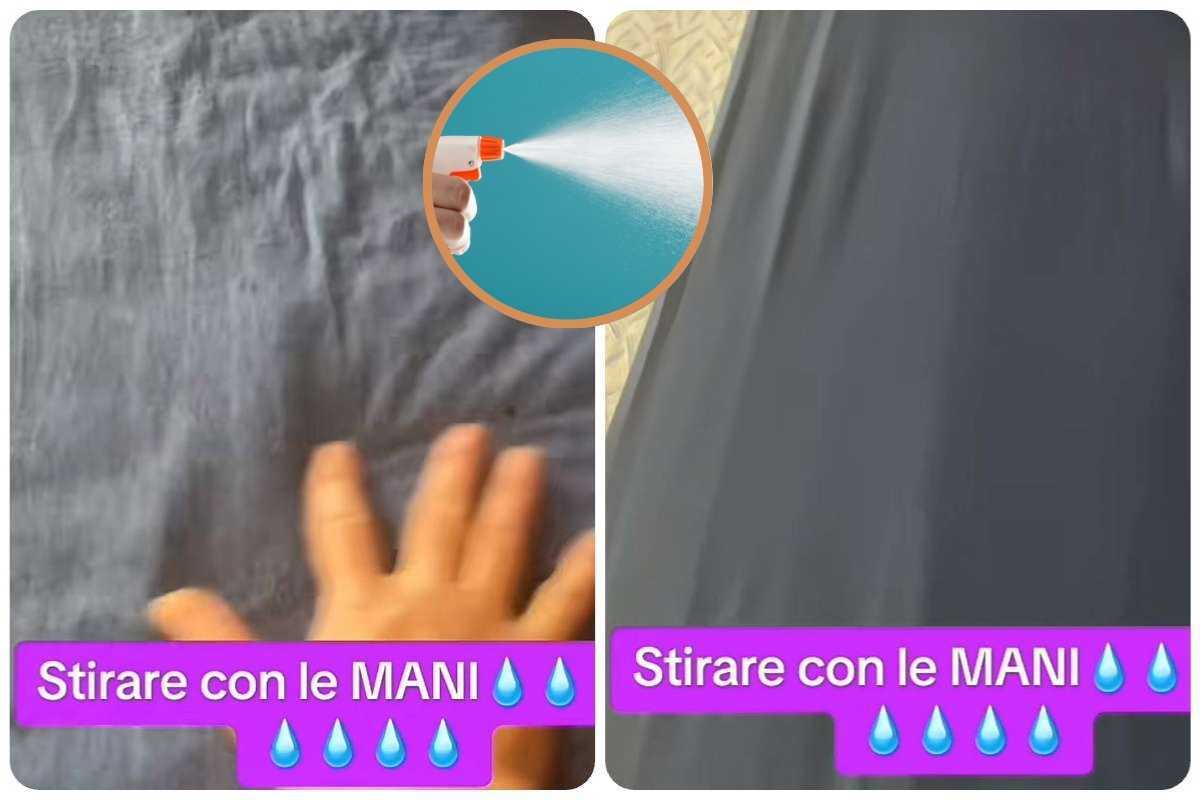 Nel video ci mostra anche la procedura utile ad ottenere la stiratura perfetta delle lenzuola. In pratica bisogna posizionare lo spruzzino a mezz’altezza, quindi cominciare a vaporizzare la soluzione di acqua e olio essenziale sulle lenzuola finché non sono umide. Una volta fatto vi basterà passarci sopra una o tutte e due le mani e otterrete un risultato incredibile.