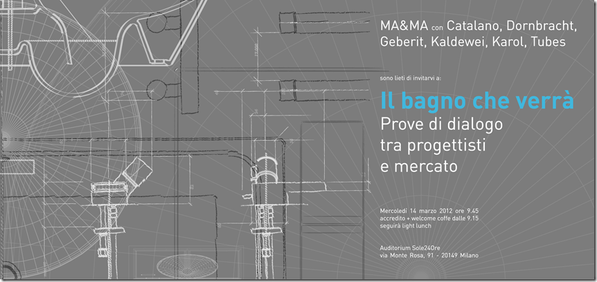Si terrà il 14 marzo a Milano, presso la sede de Il Sole 24 Ore, il convegno intitolato Il bagno che verrà – Prove di dialogo tra progettisti e mercato, un progetto ideato e promosso da MA&MA in collaborazione con i marchi leader Catalano, Dornbracht, Geberit, Kaldewei, Karol, Tubes, introdotto da Enrico Finzi e moderato da Oscar G. Colli. Interverranno nomi del calibro di Carlo Martino, Roberto Palomba, Marc Sadler e Matteo Thun. Dieci designer e architetti di esperienza e fama internazionale, un editorialista, un noto sociologo, puntuali dati di mercato e accurate proiezioni sui nuovi modi dell’abitare e sull’ambiente bagno, tra desiderio e necessità.