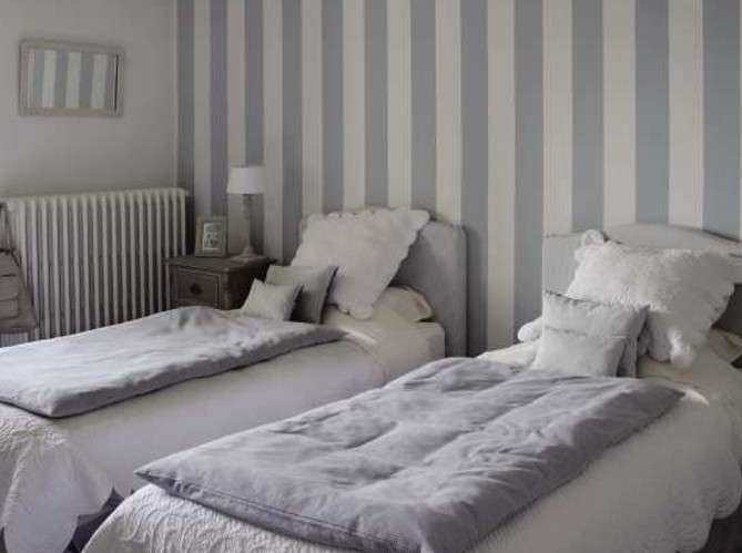 Pareti a righe in stile shabby chic.