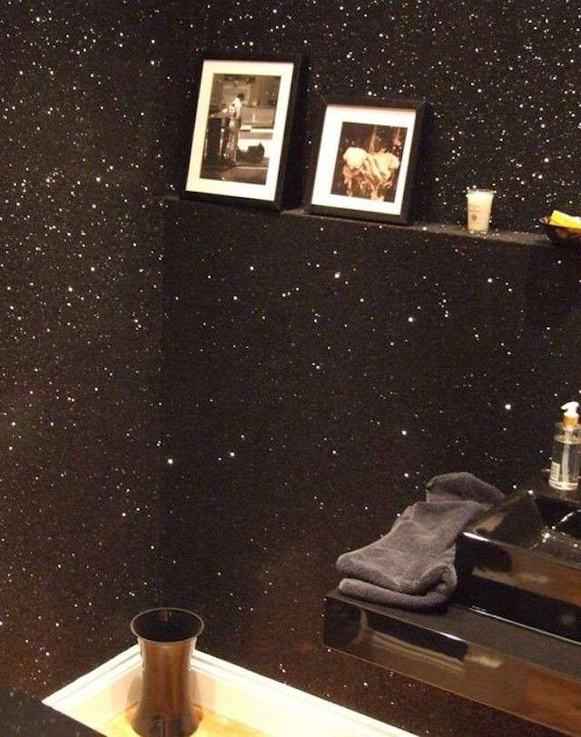 Idee fashion per realizzare pareti effetto glitter, un'ottima soluzione per impreziosire e illuminare uno spazio della casa. L’effetto brillante può essere ottenuto con le resine o con prodotti contenenti componenti a base di cristalli, quarzo naturale o brillantini, in grado di riflettere la luce e di produrre riflessi cangianti a seconda della posizione della fonte luminosa e anche dell’angolo di osservazione. In commercio si trovano glitter di vari colori. Quelli più diffusi e utilizzati sono in tonalità oro o argento. I glitter dorati si abbinano molto bene alle pareti di colore marrone, verde scuro, ma anche all’arancio, al fucsia e al giallo, ma stanno molto bene anche in casa arredata con il rosso. Al contrario, i glitter argento si abbinano al meglio con pareti di colore bianco, blu, nero e grigio. Oggi si trovano anche speciali carta da parati di design decorate, oltre che con immagini e figure particolari, con rifiniture in glitter, un ottimo complemento per illuminare un ambiente della casa, donandogli anche un tocco di modernità in più. È importante però limitare l’uso dei brillantini, una distesa di glitter potrebbe stancare facilmente e poi, si sa, le cose particolari sono quelle che si distinguono.